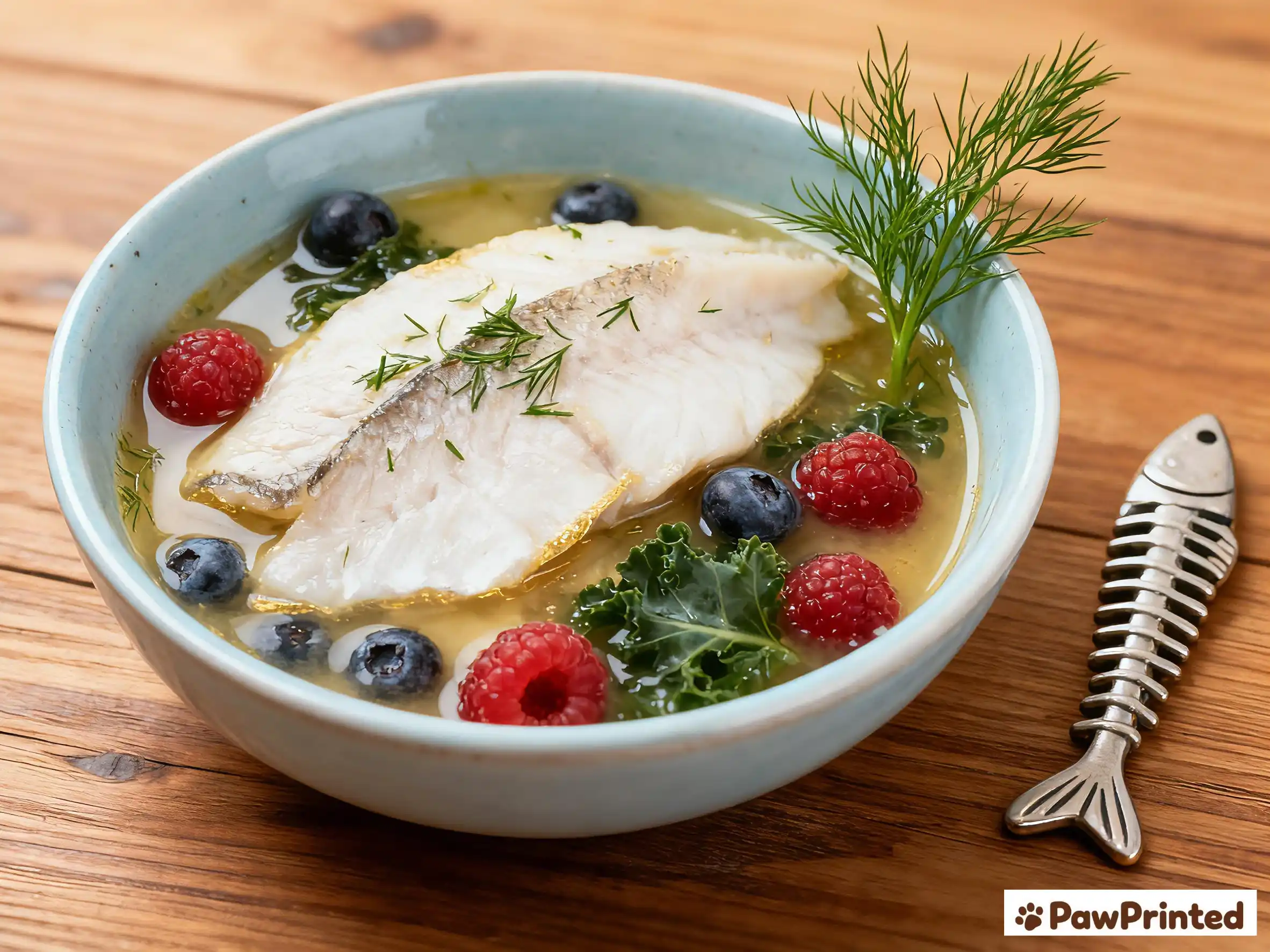 A gentle whitefish and mixed berry bowl with soft carbs and vegetables, designed for quieter, lower activity days when you still want quiet antioxidant support without heaviness.