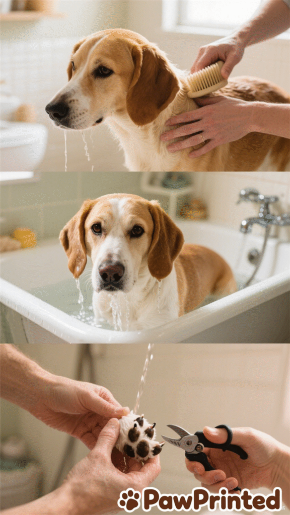 Start by brushing your dog’s coat to remove loose fur and tangles. This not only makes bathing easier but also prevents mats from tightening when wet. Use a slicker brush for long-haired breeds, and a de-shedding comb for double-coated dogs.